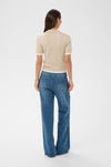 Knit polo shirt features a straight fit, classic collar, and ribbed short sleeves. Contrast ribbed trim at cuffs and hem adds distinct detail to this versatile knitwear staple.