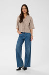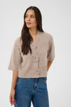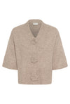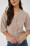 Cardigan with a boxy, straight fit and cropped length, featuring a soft textured finish. Distinctive flower-shaped front buttons and mid-length sleeves elevate the minimal design.