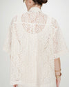 The VENDEL straight shirt is made from floral openwork lace fabric, creating a sophisticated and feminine silhouette. The three-quarter sleeves and classic shirt collar give it timeless elegance. The lightweight and fluid fabric of the VENDEL lace shirtoffers an airy and refined look.